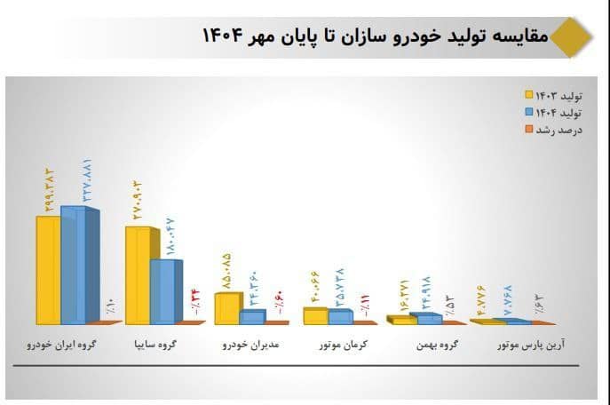 خبر قطعه – سهم تولید خودروسازان بزرگ کل کشور از تولید مهر ۱۴۰۴