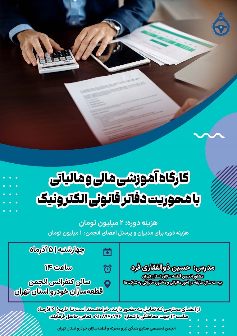 انجمن قطعهسازان خودرو استان تهران یک کارگاه تخصصی مالی و مالیاتی برگزار میکند.